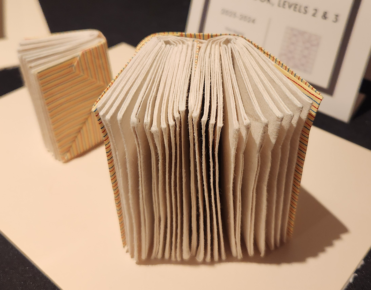 Back in 2023, Brian Chan and I started discussing origami book models, of which there are dozens, if not hundreds. But what is the most efficient way to fold a book according to our impossibly exacting standards? We defined Book Efficiency as: area of paper used for page faces (excluding cover) / total area of square.